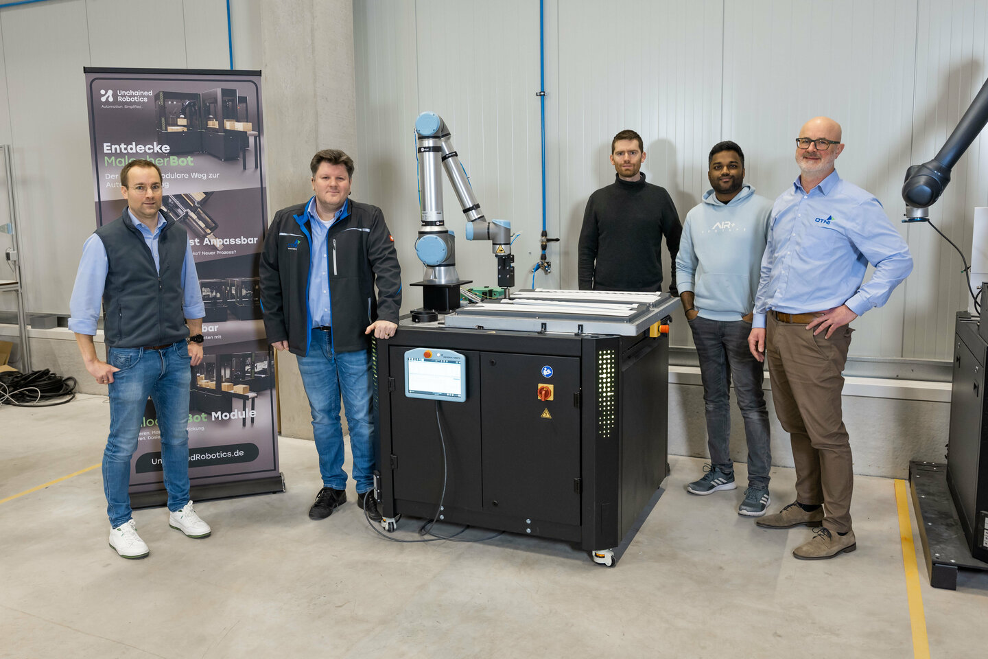 Das Paderborner Technologieunternehmen Unchained Robotics freut sich über die erfolgreiche Fertigstellung einer speziell angefertigten Zelle für einen Roboterarm, hergestellt durch die OTNI Metallverarbeitung aus Borchen. Die Kooperation zwischen den beiden Unternehmen ermöglichte die Produktion einer hochfunktionalen Roboterzelle innerhalb eines engen Zeitrahmens von nur fünf Wochen, inklusive mehrerer konstruktiver Anpassungen während der Fertigungsphase.